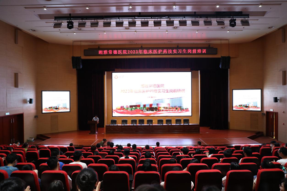 为进一步加强实习教学管理,帮助实习生更好的了解医院,熟知医院规章制度和工作流程,保障医疗安全,近日,湘雅常德医院组织省内外18所高等院校的207名医学实习生进行了岗前培训。副院长兼工会主席汤爱国及相关职能部门负责人、相关医护人员等参加会议。培训会议由科教办副主任陈羿戈主持。