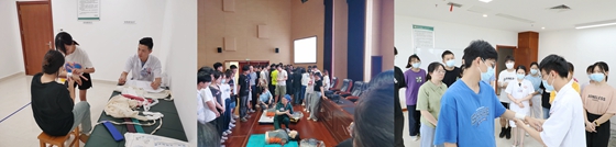 操作培训课上,邀请我院急诊科申辉主治医师、党芝蓉主管护师、健康管理中心胡婷婕主治医师围绕“现场救护”的三个一理论+止血包扎、骨折固定+搬运、心肺复苏+自动除颤仪+异物梗阻开展培训、练习及考核,考核通过后发放第一目击者培训证书。