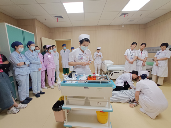为落实等级医院评审标准,加强医疗安全风险防范,规范我院“患者跌倒/坠床”等高风险意外事件的现场救护流程,提升我院医护团队对“患者跌倒/坠床”后的应急处理能力和团队抢救配合度,医务部、护理部于8月2日举办了湘雅常德医院2023年“跌倒/坠床应急演练培训”活动。内分泌代谢科医护团队共5人进行了现场演练示范,部分护士长、总住院及全院各科室护理骨干近90人分批次参加观摩并现场练习。内科及外科片科护士长参与现场点评,护理部副主任王耀辉全程参与演练指导并主持培训。