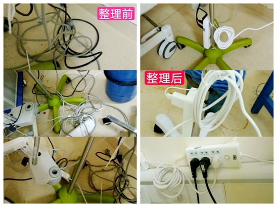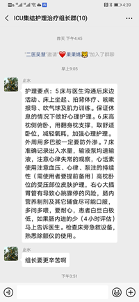 这不,带着我们秦护士长的谆谆教诲接班了啦!我们先来看看五床的伯伯,他就是之前我们提到过的近200斤的患者,现在已经脱机拔管了,生命体征相对稳定,各项指标也在逐步好转,现在的主要任务就是督促他进行功能锻炼,伯伯,你要加油啊!即使有时候伯伯自己想“偷个懒儿”,那也是不可能的!我们的护士小姐姐们一定会“鞭策”的,这不,移到了椅子上坐的很好呀!我们再配合拍背时的有效咳嗽,血氧饱和度杠杠滴啦! 六床的伯伯也脱机拔管了,但是仍然需要多巴胺维持血压,为减少感染风险,他的中心静脉导管也被拔除了,多巴胺走外周血管,最怕的就是药物外渗了,穿刺点有点发白,这可不是好征兆,我对管床的小姐姐郑小青说,我们重新打个留置针吧!小姐姐仔细再看了看,虽然没有看到明显外渗,但是对我的话还是很认同,很快就说服患者重新打针了,真是执行力相当不错的小姐姐! 八床是昨天病情加重,从病房转入的患者,结合他们的病历,我猜到了他就是五床的亲戚,一问果真是五床的姑父。八十岁的老人,有心脏病,还做过青光眼手术,眼睛现在看东西也不是很好。我们跟他说,爷爷,要好好吃东西才能早点出去哦。他居然把一碗蒸鸡蛋全部吃完啦,还说晚上要吃青菜汤加饭!嗯嗯,你们好我们就很开心! 由于前段时间人力资源紧缺,患者病情危重,病房的环境没有来得及过细的整理,今天正好各位爷爷伯伯相对稳定,四小组的队员们就开始进行6s管理啦!重症患者需要的仪器太多,线路就五花八门地缠绕在一起,而且每天都需要喷洒消毒液,这些散在地上地插座和电线就存在着安全隐患,那今天就从整理线路开始吧! 今天虽然是笨笨的大白的样子,汗水从头上趟过眼睛,又流到了身上,视线也已经模糊,可我觉得我们一起奋斗的样子最美!整理、整顿、清扫、清洁、素养、安全,即使是在特殊时期,即使是行动困难,我们的工作质量也绝不降低!保障清洁舒适的环境,就是保障所有患者和工作人员的安全。