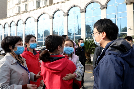3月20日上午,湘雅常德医院援助常德新冠肺炎定点医院的穆仕伟、施霞丽、向业宏、刘星、杜谦结束了为期14天的生活隔离,平安回家。湘雅常德医院院长肖目张、副院长沙新平前往隔离定点酒店迎接白衣战士回归。