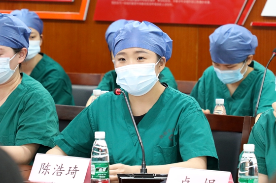 随后,援鄂护理团队队长刘安娜与支援常德市新冠肺炎定点医院护理团队队长施霞丽分别代表两支队伍在抗疫一线的救援护理工作作了简要的介绍。从建章立制到细致分工,团队协作到互帮互助。这一路有苦有甜、有泪水有欢笑,最终取得了抗疫胜利,圆满完成了抗疫任务。