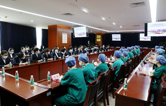 会上,肖目张院长对抗疫英雄表示了致敬、欢迎,称他们为新时代最可爱的人。他说道:“你们真正践行了医者初心、体现了大爱无疆的情怀,在疫情最危险的时刻,大家踊跃报名,满腔热忱、坚定果敢奔赴抗疫前线,生死未卜、满心牵挂,历经两月余的战斗,终于凯旋平安归来。你们展示了湘雅的风范和水平,获得了国家、省、市的认可,你们真正是一支召之即来、来之能战的队伍。你们的事迹将载入医院史册、国家疫情防控史册。同时,也对大家寄予殷切期盼,返岗后将这种迎难而上的勇气与抗疫精神融入到日常工作中,为医院继续发光发热。”