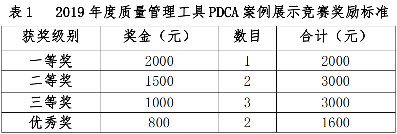 对在现场总决赛中获奖的小组,根据获奖名次分别授奖并颁发证书和奖金,对于表现突出的集体和个人在年终评优评先过程中给予支持。具体奖励办法见表1。