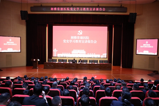 会上,李碧海同志以党史学习教育背景展开宣讲,围绕“深入学习领会习近平总书记关于党的历史的重要论述,切实增强开展党史学习教育的政治自觉和行动自觉”“认真研读党史基本著作,全面了解中国共产党百年奋斗的光辉历程和历史贡献”“把百年党史与湖南巨变、常德巨变联系起来把握,深刻感悟百年党史湖南篇章的作为与担当”“深刻把握党史学习教育的重点要点,不断从党的光辉历史中汲取砥砺奋进的智慧和力量”四个篇章深刻阐述了学习党史的重要意义和重要地位,并要求全院群策群力,践行初心使命,共同为“学党史 办实事”出谋划策。