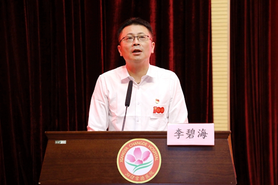 党委书记李碧海以《续写百年忆峥嵘 笃学力行开新局》为题作了重要讲话,指出湘雅常德医院要始终围绕省委“三高四新”和市委“开放强市产业立市”战略,坚持党建引领,实干为民,奋力朝着医院“十四五”规划蓝图而努力。一是要坚定“而今迈步从头越”的信心,在医疗发展工作中敲响党建引领的“定音鼓”,坚持党建引领,充分发挥党支部的战斗堡垒作用和党员先锋模范作用,统筹推进医院改革发展、医疗服务、医德医风等各项工作,建设患者放心、人民满意的医院。二是要砥砺“一枝一叶总关情”的初心,在坚守人民立场中唱响党的宗旨“主旋律”。全院干部职工要将初心使命同人民群众急难愁盼紧密结合,继续深入开展“我为群众办实事”实践活动,将党史学习教育成果转化为攻坚克难干事创业的强大动力。三是要淬炼“天工人巧日争新”的匠心,在紧跟时代节拍中奏响医疗最强音。重点在围绕解决“看病难、看病贵”问题、提升医疗服务质量、推动医院改革发展三方面做好文章。