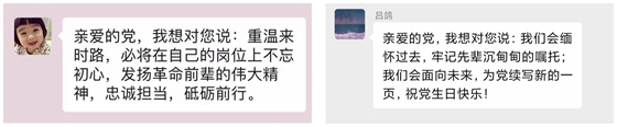 活动发起后,同志们积极响应,纷纷以文字表达了对党的衷心祝福,对国家的自豪与感恩。