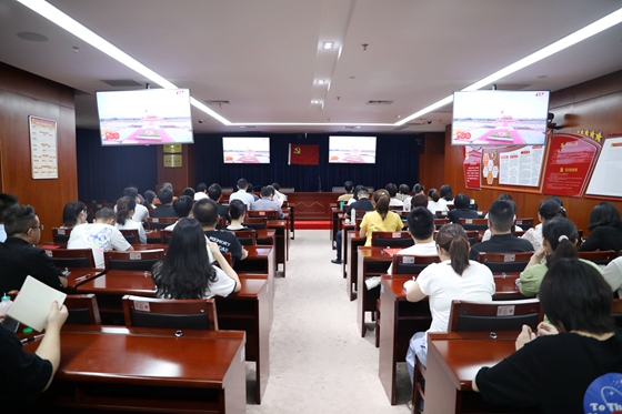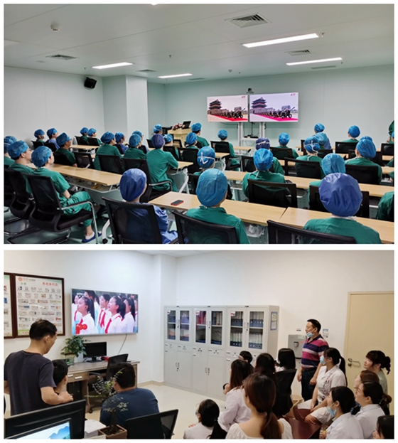 庆祝中国共产党成立100周年大会于7月1日上午8时在北京天安门广场隆重举行,中共中央总书记、国家主席、中央军委主席习近平出席大会并发表重要讲话。湘雅常德医院全体院领导及全体非值班党员通过智慧党建视频会议系统、央视新闻直播等途径集中收看大会直播。