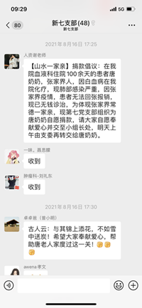 第七党支部血液科的医生、护士知道情况后,联合党支部其他党员及第七分工会,自发地为他们捐款。8月17日,支部将捐款交至唐奶奶的家属手中。