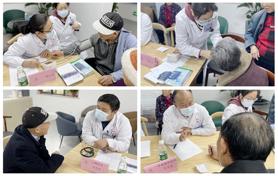 活动当天,尽管天气阴雨绵绵,前来义诊的老人早早的在义诊桌前等候,专家们也是一到就立刻全身心投于到健康义诊工作,为前来就诊的老人进行免费健康体查、问诊、用药咨询、测量血压、发放健康宣传手册等。针对每位老人的不同情况,医生们耐心地解答并叮嘱他们各种日常注意事项,为老人排忧解难。期间蒋荣鑫主任还为老人介绍防病和养生知识,为他们提供合理膳食、运动等生活指导,做到“未病先防”“既病防变”“预后防复”。
