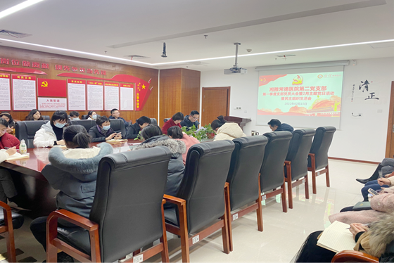 2月15日晚,湘雅常德医院第二党支部在行政楼518会议室召开2021年度专题组织生活会暨2月主题党日活动,会议由支部书记欧阳波同志主持,党委副书记、院长肖目张及全体非值班党员参加会议。