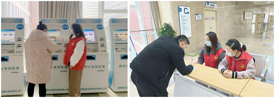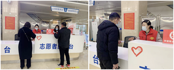 活动中,医疗志愿者用真诚、热情的服务态度在门诊导诊台为患者答疑解惑,指引患者去相关科室就诊。