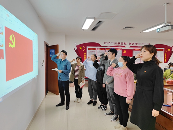 会议还讨论并通过了预备党员张利辉、陈浩琦、马咪、缪江华、张小月、田娇6名同志的转正相关事宜。在支部委员向业宏的带领下,6名同志面对党旗进行庄严的入党宣誓,宣誓声音铿锵有力,响彻整个会议现场。