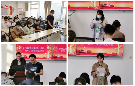 随后,4位预备党员的入党介绍人及所在党小组分别对其在思想及工作中的表现发表了意见,肯定了四位同志在预备期的表现。支部书记蒋欣杰也代表支部委员会宣读了4位预备党员在预备期的教育考察情况,他指出,一年来,四位同志积极参加党内组织生活,不断提高思想政治素质和理论素养,在工作中能够团结同志,勤勉务实,工作表现突出,同意按期转为中共正式党员。
