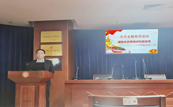 5月17日晚,湘雅常德医院第三党支部在行政楼1012会议室召开“援助吉林英雄讲抗议故事”主题党日活动,会议由党支部书记孙道主持,纪委书记皮建宏和全体非值班党员参会。