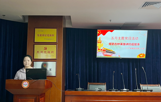 纪委书记皮建宏总结发言表示,两名医务工作者的援助吉林的分享突显了危难时刻挺身而出的英雄形象,非常值得我们所有党员同志学习。她还对转正的3名党员寄予期望,希望他们不忘初心、牢记使命,有担当,有责任感,激情活跃,积极创新,同时皮建宏同志鼓励全体党员积极参加支部活动,通过活动提升政治觉悟,开展批评与自我批评,吸纳先进模范的优秀事迹,通过举一反三,将临床业务与党建工作充分融合,把党建优势转化为发展优势,引领医院高质量发展。