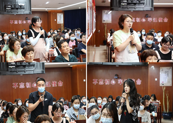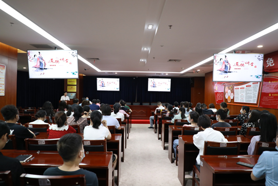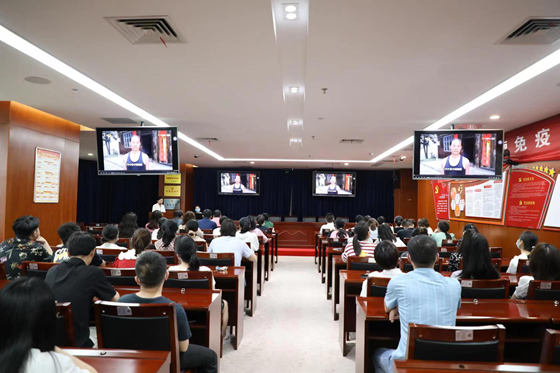 学模范环节,全体人员先聆听了我院援吉医疗队员、消化内科护士龙献芳讲述的援吉抗疫经历,后通过短片了解了“全国脱贫攻坚先进个人”“湖南省优秀共产党员”王新法的先进事迹。诵经典环节,主持人带领全体人员诵读《道德经》节选篇目,并进行解读。与会人员深受触动,在“发善心”环节先后分享自己的心得体会。妇科护士杨思敏说:“作为一名护士,要想病人之所想,急病人之所急,奉献出自己的青春年华,希望所有病人都能康复出院。”