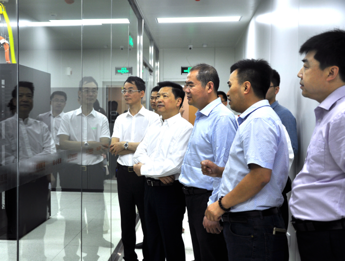李远斌院长陪同何新飞副总裁一行参观湘雅常德医院网络信息中心数据机房。
