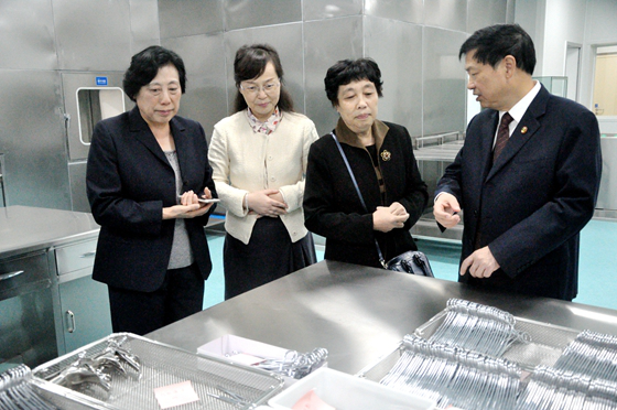 11月8日,湖南省卫生和计划生育委员会医政医管处于艳萍副处长及湖南省消毒供应委员会主任委员余正香主任、康虹委员一行莅临湘雅常德医院,对医院消毒供应中心进行验收检查。湘雅常德医院院长李远斌、行政副院长沙新平、党政办主任汤爱国、护理部主任冯梅、消毒供应中心护士长段小兰等参与了接待。