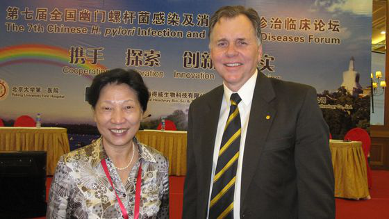 张桂英教授与幽门螺杆菌发现者、诺贝尔奖得主马歇尔合影