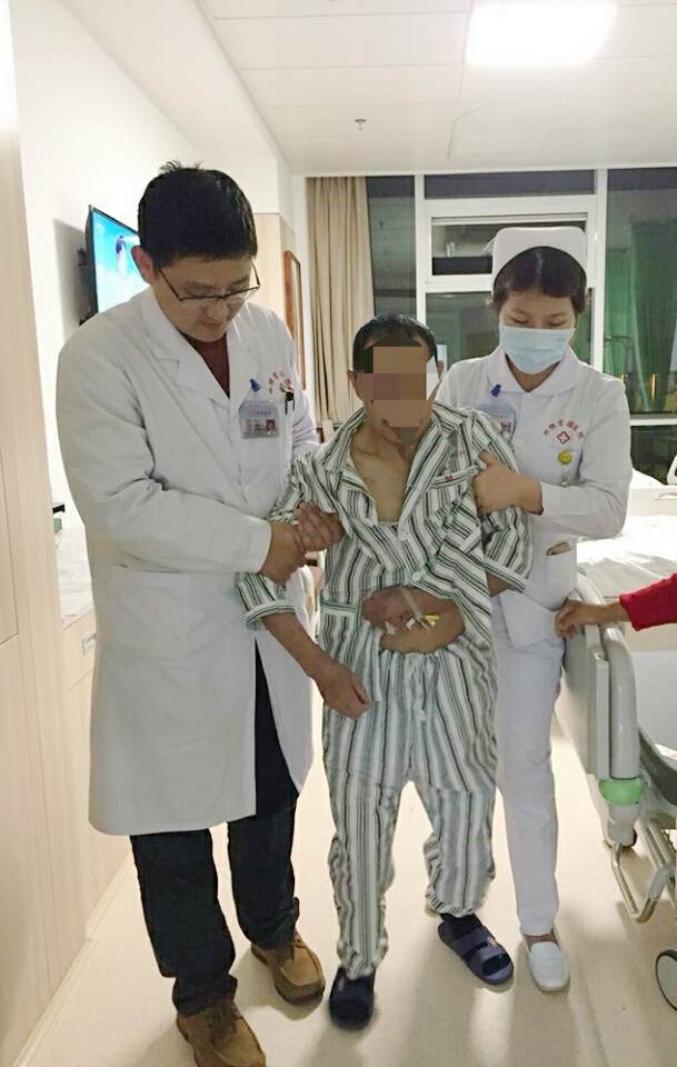 11月29日,手术当日,考虑到患者既往病史复杂,麻醉风险大,麻醉科医生及手术室护士为其制定了个性化麻醉方案,成功为其实施麻醉。手术台上张朝跃主任团队默契配合,以精湛的技术,顺利结束手术。当焦急等待在手术室门口的家属,看到患者被安全推出手术室时,感激和喜悦之情无以言表。12月2日,术后第四天,经过精心护理,患者可下床短暂活动,患者家属见此更是无比开心。