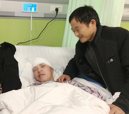 2013年,孙女士再次出现头晕、迷糊的状况,送往医院检查发现右侧额部肿瘤复发,大小约5.5*6.2cm。孙女士同丈夫带上所有积蓄和借款,再次来到大医院行开颅探查肿物切除术。术后,孙女士出现左侧肢体瘫痪,家里的重担一下子全压在了这个男人身上,除了要给妻子端水喂饭,还要筹集女儿的学费、生活费……