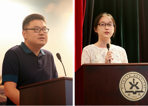 医师代表李军烽发言,表示将肩负起责任,牢记救死扶伤的职责,恪守医德医风,秉承湘雅精神和优良传统,勤于学习,为推动湘雅常德医院发展贡献出自己的力量。