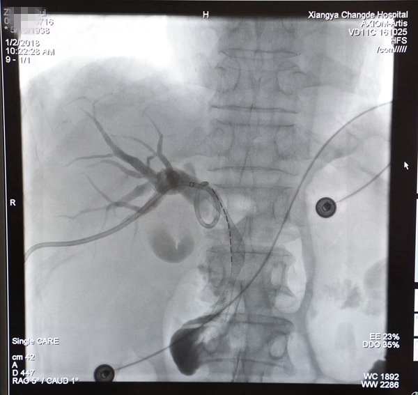 1月2日,湘雅常德医院放射介入科成功实施了常德市首例胆道引流+胆管支架及碘125放射性粒子植入术。