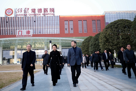 1月8日,永州市委书记、市人大常委会主任李晖,永州市委副书记、市长赵应云率领的永州市党政代表团一行80余人来湘雅常德医院考察,常德市委书记、市人大常委会主任周德睿,常德市委副书记、市长曹立军全程陪同。湘雅常德医院党委书记曾克非,副院长沙新平等进行了热情的接待。
