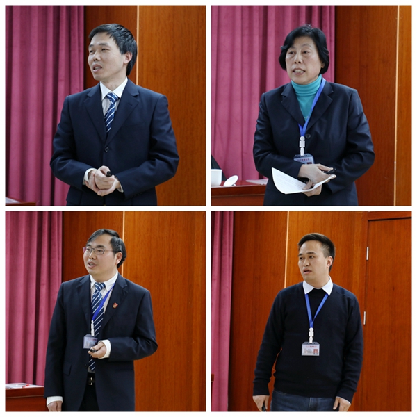 人力资源部主任胡卫锋、护理部主任冯梅、财务部主任欧树文、网络信息中心主任胡芳华作述职汇报