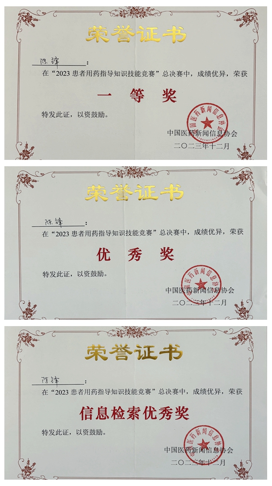 12月24日,2023年患者用药指导全国知识技能竞赛总决赛顺利在四川成都举行。湘雅常德医院药师陈锋在本次竞赛中喜获“一等奖”“优秀奖”等多项荣誉。