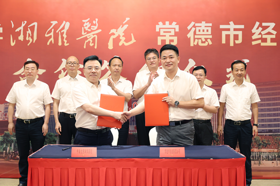 签约仪式上,中南大学湘雅医院院长雷光华、常德经投集团董事长高见代表双方签约。