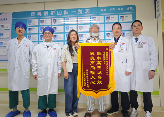 首例患者张先生来自常德津市,3月19日因意外被大树砸伤头部,经当地医院诊断为具有致命风险的环椎骨折。得益于2025年1月正式挂牌的“中南大学湘雅医院骨科常德病区”,患者无需转诊长沙,于3月25日由中南大学湘雅医院脊柱外科专家吴天定副教授主刀完成手术。术后3天患者即可佩戴支具下床活动,恢复效果超出预期。