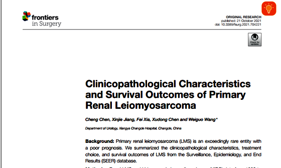 湘雅常德医院泌尿外科团队一篇研究性论文在国际知名期刊《Frontiers in surgery》(JCR 2区,IF:2.718)上发表,论文题目《Clinicopathological Characteristics and Survival Out...