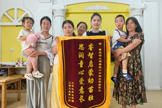 近日,湘雅常德医院为期6周的暑期职工子女托管班圆满落幕。 在暑托快结束时,医院职工特地向幼儿园赠送“睿智启蒙幼苗长 思润童心爱意长”的锦旗,该职工表示:“暑...