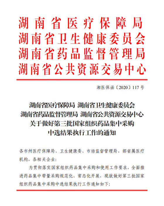 为积极推进国家集中采购政策,全面落实湖南省关于国家组织药品集中采购和使用的部署要求,进一步提高医保基金使用效益,切实减轻患者负担。自2020年1月起,湘雅常德医院开始启动...