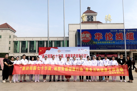 为迎接中华人民共和国成立70周年,9月26日,湘雅常德医院在火车站广场开展“服务百姓健康”义诊活动。此次活动以专家看诊、健康咨询、合理用药咨询、免费测血压及测血糖、健康宣传资料发放...