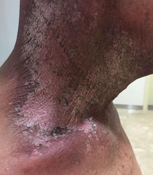 近日,湘雅常德医院放疗中心有患者向医技人员问道:“医生,我放疗的地方皮肤变黑,脱皮很严重,这是怎么了?”患者的颈部区域都是红斑和脱落的皮肤。 这是放射性皮炎,因为最...