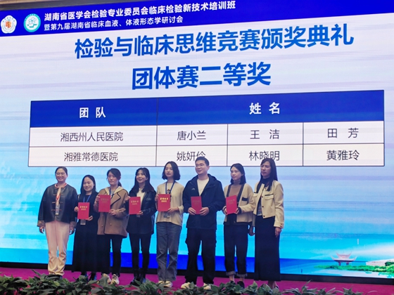 6月14日,湖南省医师协会检验医师分会2025年医学检验形态学竞赛在省会长沙举行。湘雅常德医院检验科高夏秋、文晨、姚妍伶团队凭借过硬的专业素养和敏锐的形态辨识能力,以总分全...