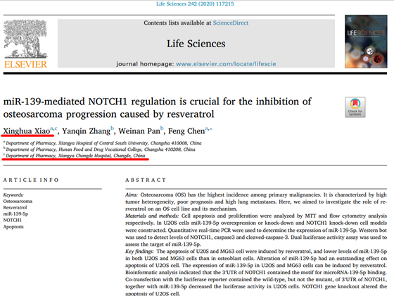 近日,湘雅常德医院药剂科团队一篇研究性论文在国际知名期刊《Life Sciences》(JCR Q1区,IF:6.1)上发表,论文题目为《miR-139-mediated NOTCH1 regulation is crucial for inhi...