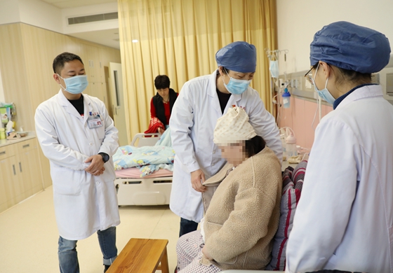 3月27日,32岁的李女士诞下一位32周的女婴,这个出生重量仅1.6千克的宝宝对李女士全家来说“珍贵无比”。李女士看着宝宝,激动地说:“如果不是梁主任,也许我就见不到你了!” 梁丽凌教授为患者检...