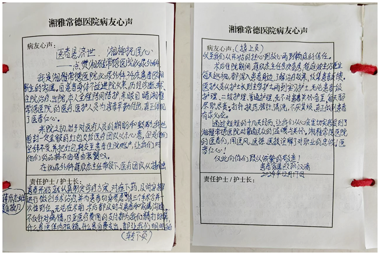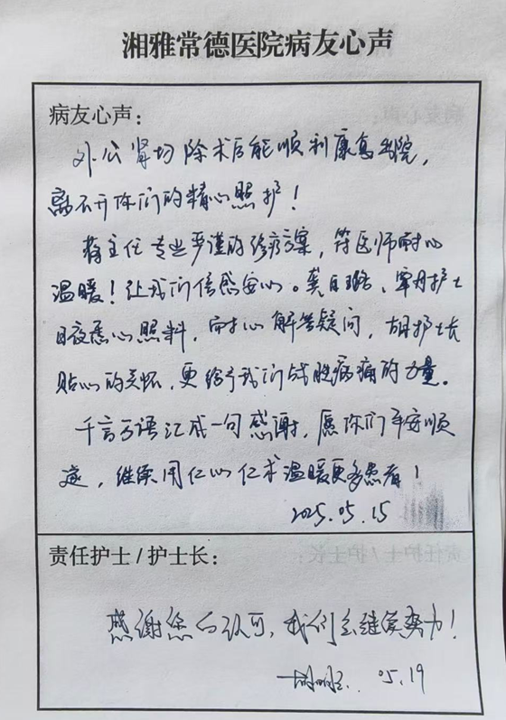 近日,湘雅常德医院泌尿外科收到了一封来自77岁高龄患者家属亲笔写的感谢信,患者及家属在信中表达了对我院泌尿外科蒋欣杰主任、符庭波医生及科室所有医护人员在住院期间给予...