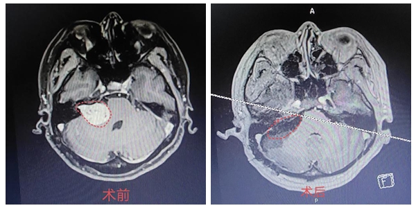 近日,湘雅常德医院神经外科袁贤瑞教授团队为一例三叉神经鞘瘤患者实施行开颅颅底肿瘤切除术,切除了长达13年之久的三叉神经鞘瘤,肿瘤长达3厘米。术后患者面颊部麻木、疼痛等症状消失,目前恢复良好...