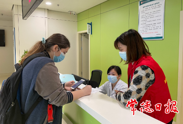 “You’re very nice! Thank you!”4月28日,在湘雅常德医院,外籍友人Sovi不断向志愿者小妮表示感谢。 Sovi在志愿者小妮的帮助下填写资料 4月26日,已经怀孕...