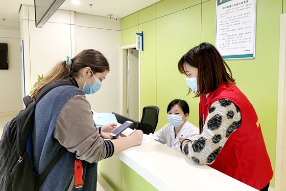 据了解,湘雅常德医院积极开展党史学习教育,各部门坚持以深学促实干,积极为群众办实事解难题,在党员的带领下,该院90%行政后勤人员深入一线,参与志愿者服务,随时随地帮助遇到困难的患者。此次为外籍友人提供志愿服务的小妮,就是该院行政人员,且是一名预备党员。