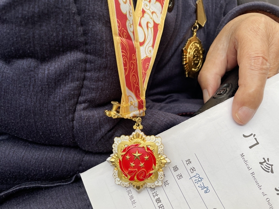 听闻湘雅专家到来的消息,90岁高龄的陈湘老人早已在义诊现场等候。胸前的那枚庆祝抗日战争胜利70周年纪念章,熠熠生泽。