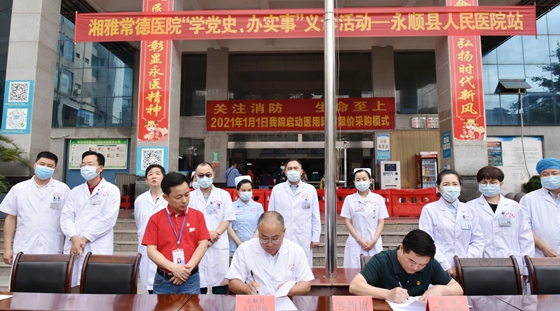 活动启动仪式于上午8点在永顺县人民医院门诊举行。永顺县人民医院党委书记陈耀明带领医院全院职工对我院博士团队的到来表示热烈欢迎。仪式现场,双方领导均对此次活动的时效性、针对性和有效性表示高度认可,双方就日后工作中对更深层次的交流学习签订了双向转诊合作协议,为巡回医疗、学术指导、进修培训等工作奠定夯实基础。